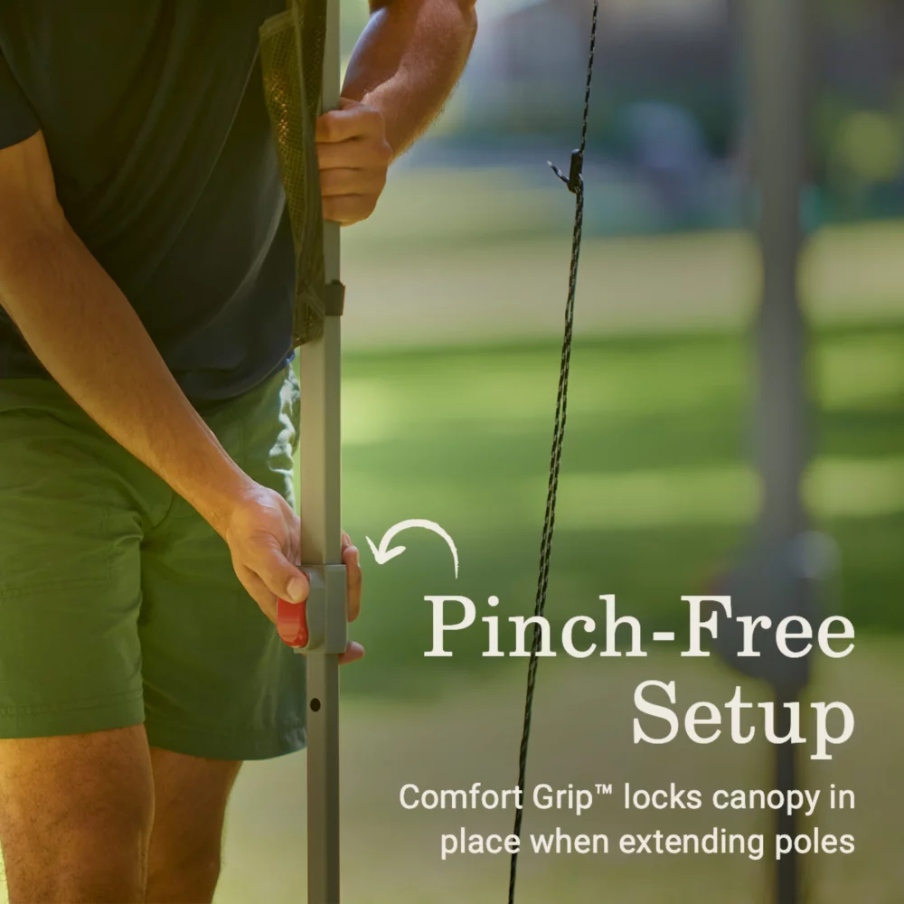 - PINCH-FREE SETUP & TAKEDOWN: Comfort Grip™ features easy-to-use buttons for locking the poles in place when setting up or taking down